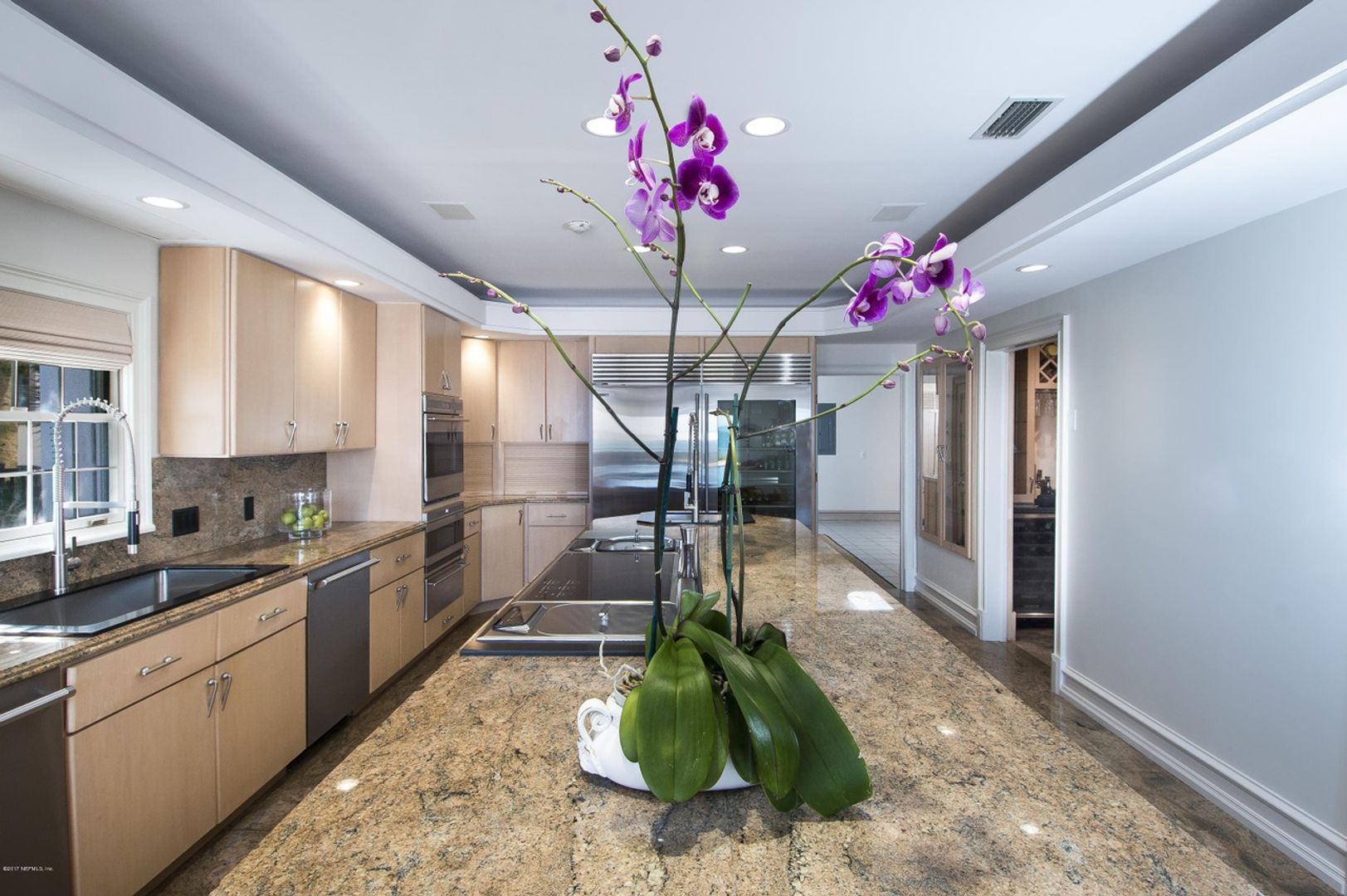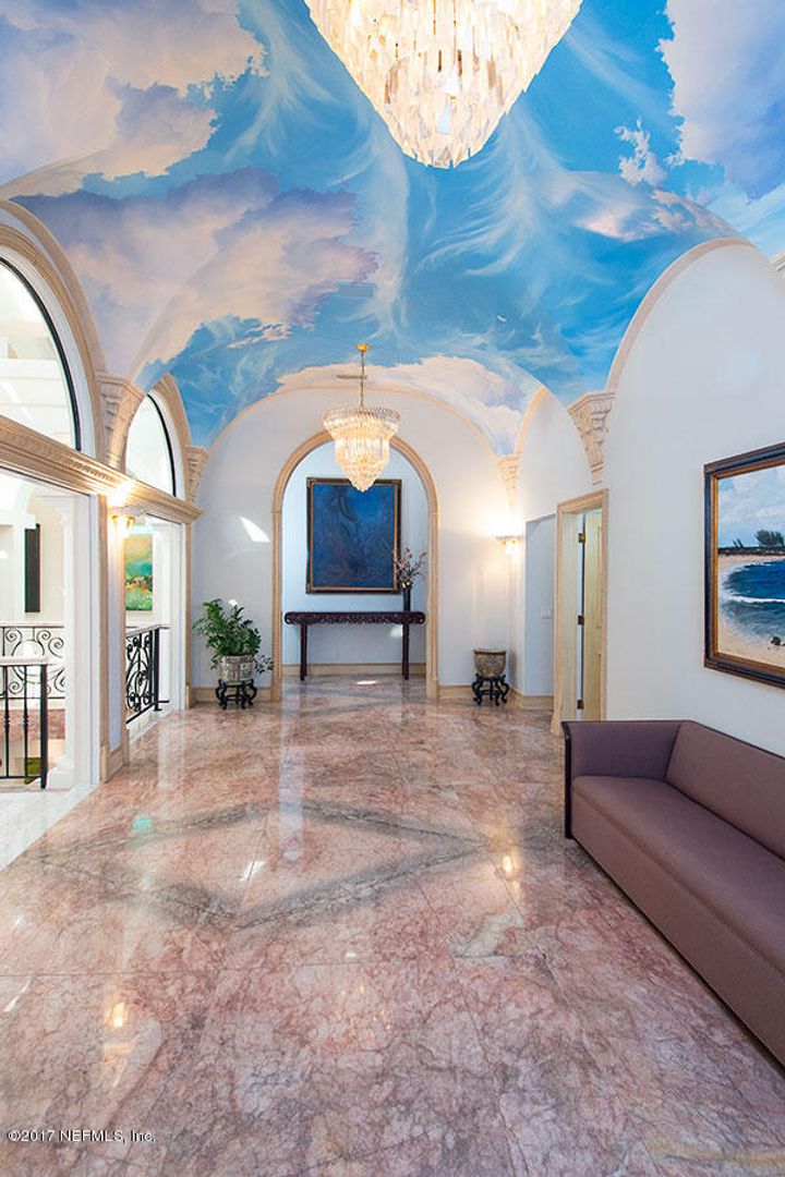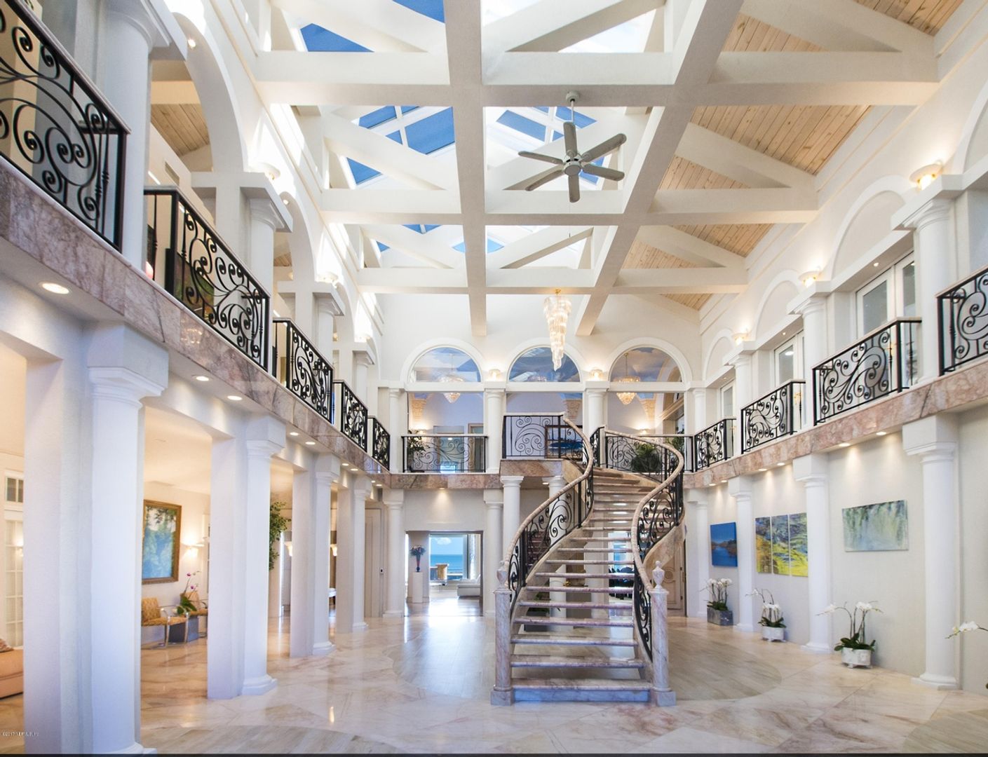 Enter through a two-story atrium with gorgeous ocean views. The home features two staircases, an elevator, and a 24×20 oceanfront master suite with an oceanfront balcony and two separate walk-in closets (12×20 and 19×20).