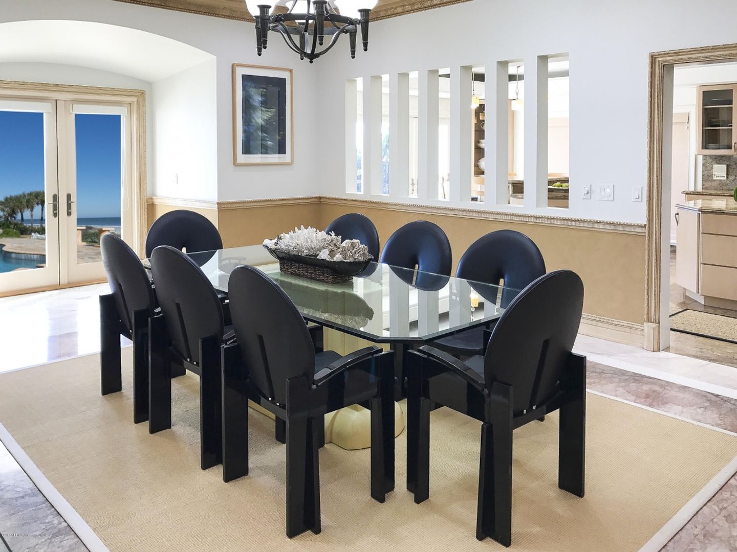 This home features 4 bedrooms, 4 baths, and 2 half baths, along with an oceanfront dining room that opens to the kitchen and an oceanfront living room. Soaring ceilings, wide open spaces, and clean lines define this Palm Beach–style estate.